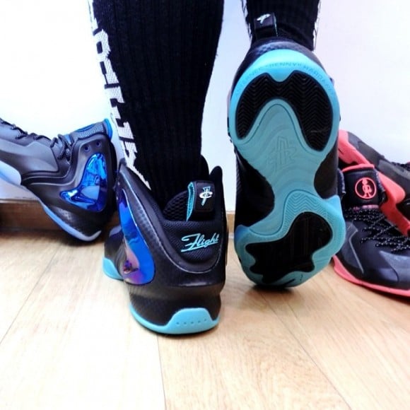 Keeping the Nike Lil’ Penny Posite coverage going, we have an on-foot look at the “Jade” colorway to share with all of your sneaker viewing pleasures. Flush with eye catching shades of green placed about a black base, touches of carbon fiber detailing also pop up on the shoe as well. While the color scheme may be nice, there’s no word on when the folks over at Nike plan on releasing it. As you continue to wait, go ahead and check out the new photos after the jump and be sure to let us know which pair you are most looking forward to picking up.