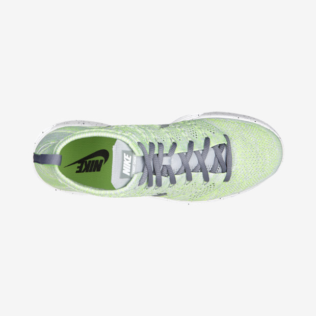 Constructed out of its usual Flyknit woven uppers and Lunarlon soles, this variation makes use of an electric green palette with contrasting hints of wolf grey, cool grey, and white. A nice casual option, this shoe also dons a speckled midsole and comes Nike+ enabled.