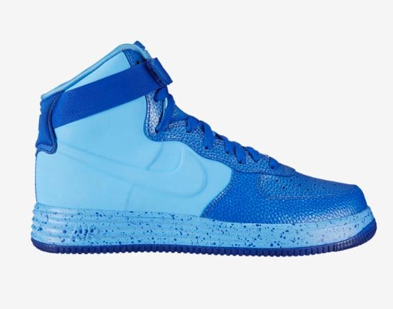 What makes for an obnoxious blue mockup, this high-top features a combination of seamless Vac-Tech and premium leather materials, an official game royal and university blue color combination, a speckled Lunarlon midsole, and sits atop a translucent game royal outsole.