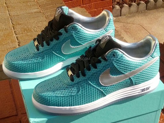 With news of a possible 2014 Nike SB Dunk High “Tiffany” amongst other Tiffany-related customs seen over this past year, the Nike Lunar Force 1 was recently introduced as the latest model to take after the household name. A 1-of-1 Bespoke by Anthony Baker, this custom takes on a Tiffany blue colorway with snakeskin uppers and silvery details that line the inner and Swoosh branding. Offset by its black lace set and white midsole, these Bespokes are complete with an icy bottom.