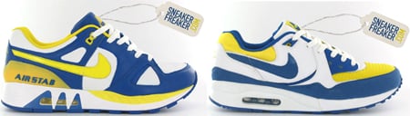 Here is a preview of a upcoming pack from Nike containing the Nike Air Max 90, Air Stab and Air Assault Lows. All pairs consist of a Blue, Yellow and White color scheme, but for now no additional information on what the pack represents (if anything). More pictures below, via Sneakerfreaker.