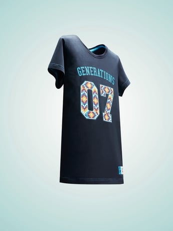The American Football jersey silhouette of the N7 Generations T-shirt pays homage to N7 ambassador Sam Bradford, who is a quarterback with the St. Louis Rams and also the first ever Native American first-round draft pick in 2009. The digitally inspired print graphic on the front and back provide a tactile beaded feel, with exaggerated pixels forming a โ07โ on the front to signify the year 2007 when Nike N7 product was first released. Visible top-stitching along the seams of the organic cotton jersey gives a hand-crafted look and feel. Highlighted on the front is theย N7 philosophy: In every deliberation we must consider the impact of our decisions on the seventh generation.