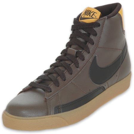 From one Nike Blazer to another, we get a look at yet another high-cut Blazer which has just dropped at Finishline. The latest NYX Blazer High features a simple color-way, opposed to the earlier previewed Cement Print Blazer High. A combination of dark cinder, black and yellow ochre makes up the leather upper, while a gum-like sole adds a nice finishing touch.