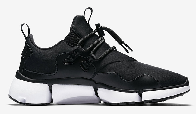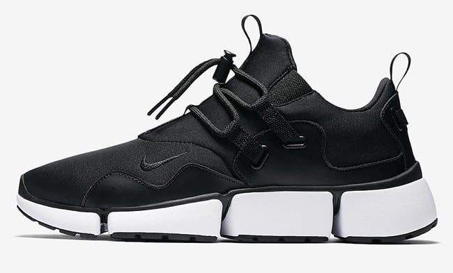 What you may notice on the Nike Pocket Knife DM is that they use a brand new cushioning setup. Following we have a neoprene upper which is a perfect fit for the warmer months. Instead of traditional laces, the brand uses a toggle drawstring setup. One pair features predominate White while Black covers the outsole. The other comes in mainly Black with accents of White.