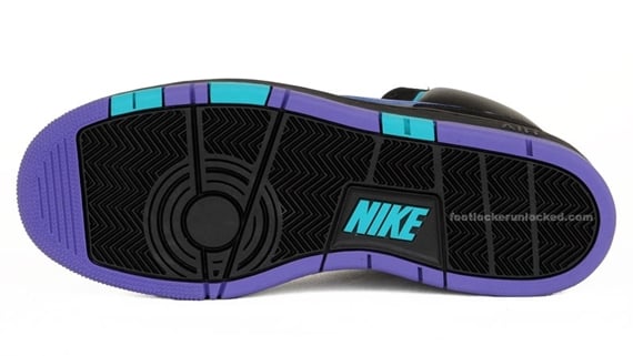 If you dug the Aqua Air Jordan VIIIs, then these Nike Prestiges are sure to complement your og or retro pair nicely. The Nike Prestige High comes in a fitting black/varsity purple-turbo green colorway, using a black leather and suede upper with a nice purple leather swoosh. Turbo green and varsity purple fill the outsole, to match the contrasts on the upper. These hightops are perfect to match your Aquas with your lady or your kid, and you can get ’em once they release at Footlocker come Spring 2010.