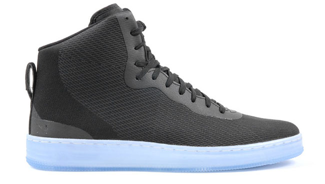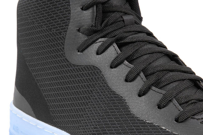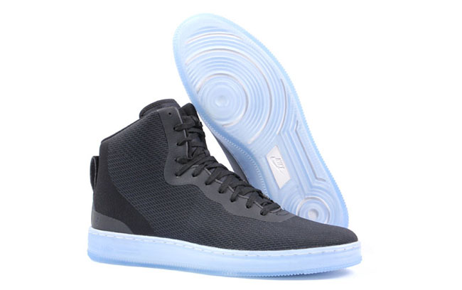 As you can see, the upper portion of the shoe is built using a seamless construction, which is done in black. Materials used are a combination of mesh with hits of hyperfuse. The midsole, which reflects the AF1 is done in a blue ice with translucent finish.