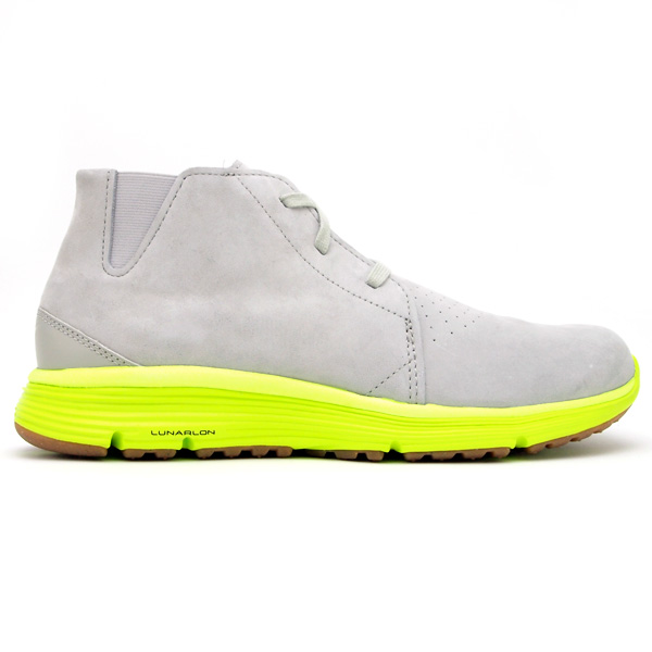 Once again sitting atop a gum rubber outsole and Volt colored Lunarlon midsole for cushioning, the kicks see a grey suede mid-top upper this time around, complete with matching understated NSW branding on the tongue.
