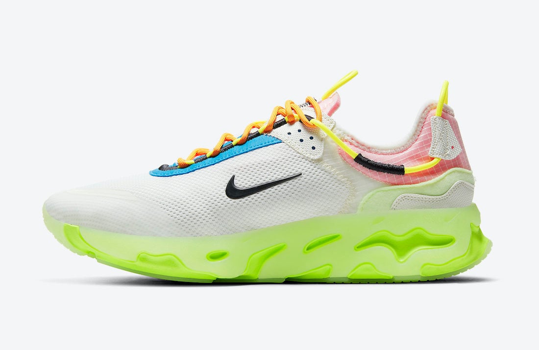 Nike will release a lower-tier React model known as the Nike React Live. One of the first color options to debut comes highlighted in โBarely Volt.โ