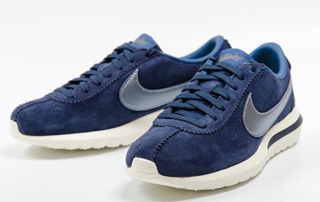 Although the Roshe launched in 2012, the Cortez which dropped in the 70s allow this pair for a vintage look. Building with premium materials, through the base is suede in midnight navy. Silver is added to the swoosh while the midsole features an off-white.