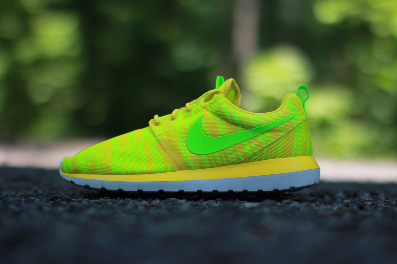 Priced at $95, you may find the Nike Roshe Run NM BR “Charm Yellow/Electric Green-Volt” through your local retailer or Rock City Kicks.