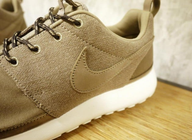 Donning a khaki canvas upper with a matching leather Swoosh, Black Tea accents, a white sole and khaki herringbone quarter panels, the Khaki/Khaki-Sail-Black Teaย colorway of theย Nike Roshe Run Premiumย NRG is set to hit select US Nike Sportswear accounts on December 15 for $85.