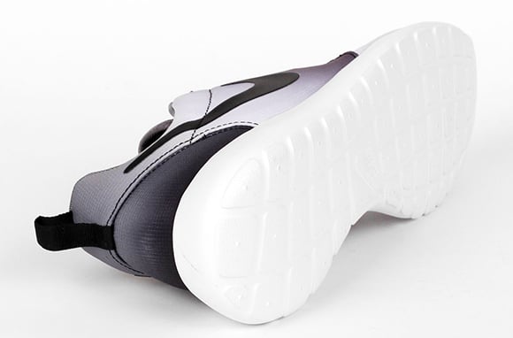 Using black, white and cool grey, the toe box and side panels transition from black to cool grey and then white, giving the Roshe Run Print a Eclipse look.