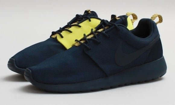Nike just recently dropped a new colorway for the Split series; the Roshe Run Split (Green/Grey). Today Nike drops another new colorway for the Roshe Run Split series. Featuring an Armory Navy base coating and Yellow inner side panels, the new colorway does great justice for the Roshe Run. This Split colorway of the Nike Roshe Run is now available nation-wide, including places like CNCPTS.