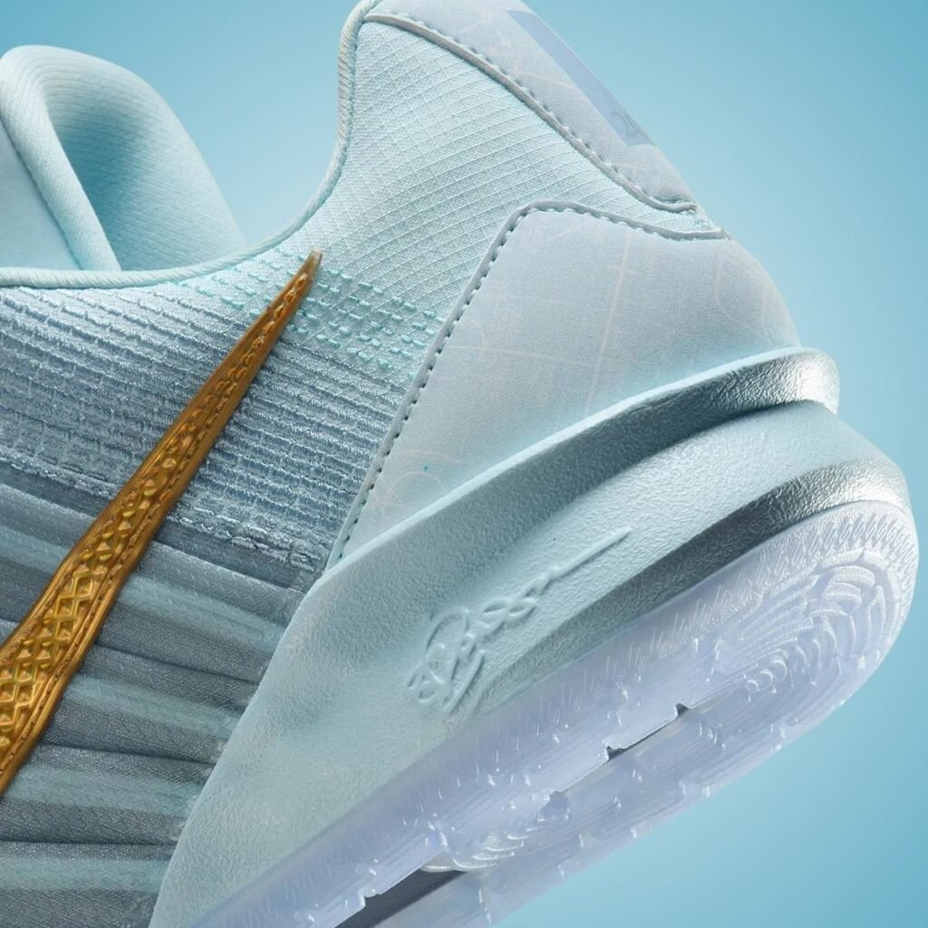 This Nike Sabrina 3 is dressed in a Glacier Blue, Neptune Blue, Light Armory Blue, and Metallic Gold color scheme. Once again, the model features a low-cut build. Built with mesh and flywire cables that connect to the lacing system, the pair is covered in various shades of Blue. What some may not notice right away is the repeated โSโ logo on the heels, but what will catch your eye is the Metallic Gold on the Swoosh logos and tongue branding. Lastly, we have a translucent outsole that gradients from dark to light Blue.
