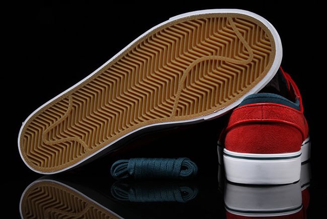 The latest Nike SB Stefan Janoski comes in University Red, White and Midnight Turquoise. Using suede through the uppers while coated in Red, the stitched Swoosh, liner and inside of the tongue comes in Midnight Turquoise. Completing the look is a White midsole, Gum outsole and comes with a second set of laces.