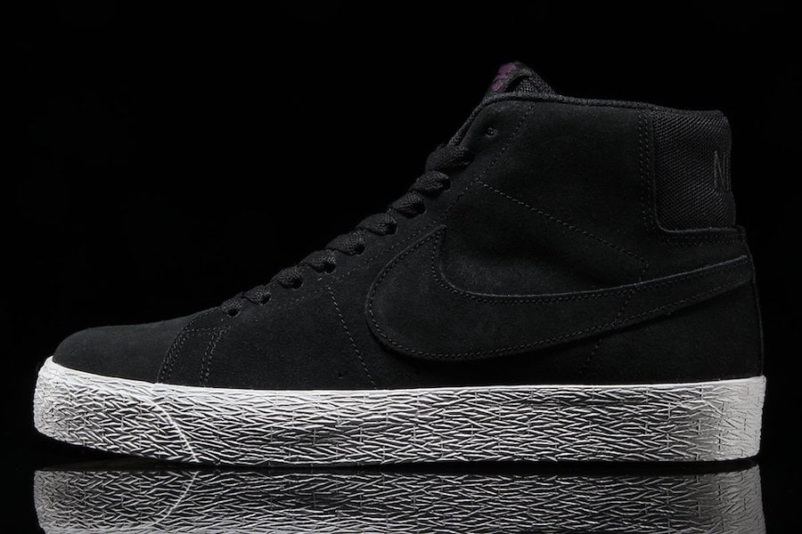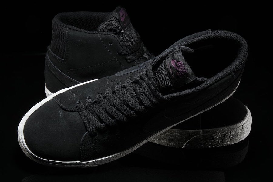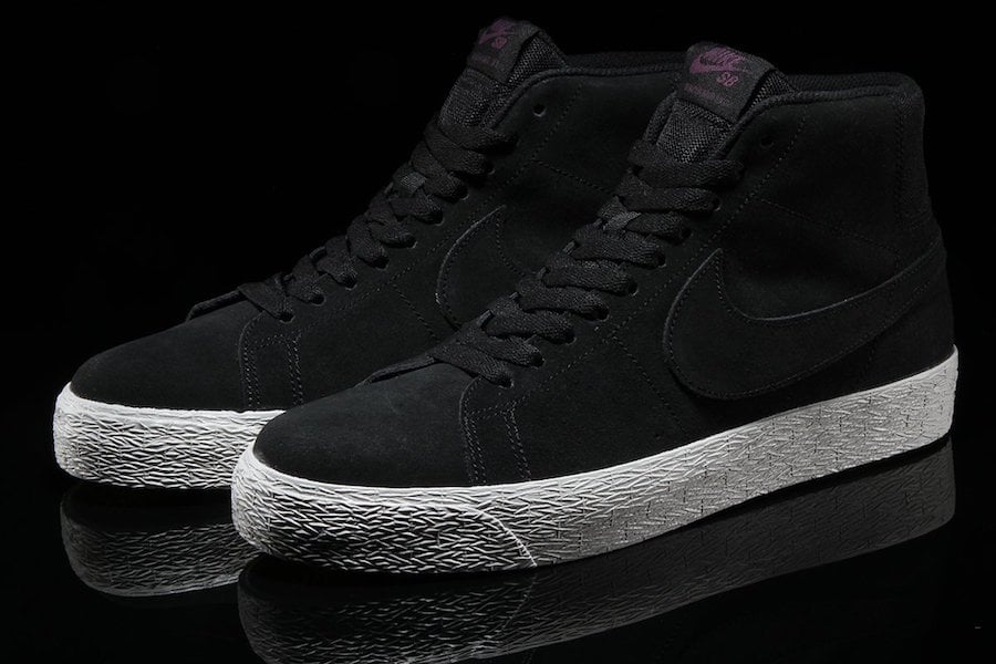 This Nike SB Blazer Mid will have uppers constructed of all Black suede material. Following they will also have subtle Purple detailing on the tongue. In addition the include an all White midsole and the iconic Gum waffle outsole that has been seen on previous Blazer releases.