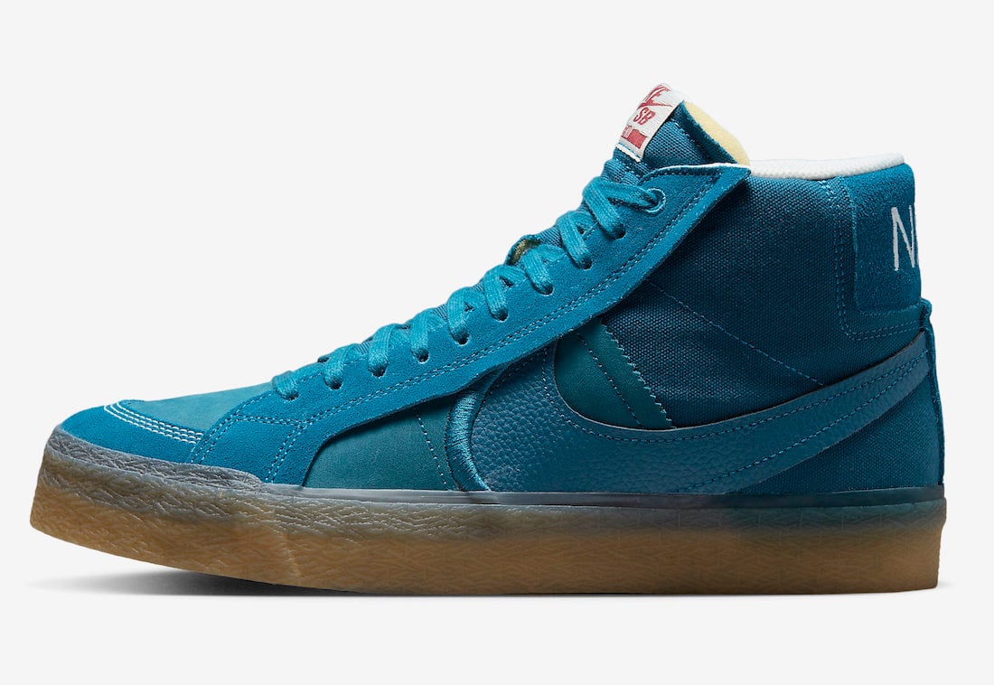 With 2023 nearing, Nike Skateboarding will have a lineup of SB Blazer Mid color options for the new year. One of those will feature a โTeal Gumโ theme.