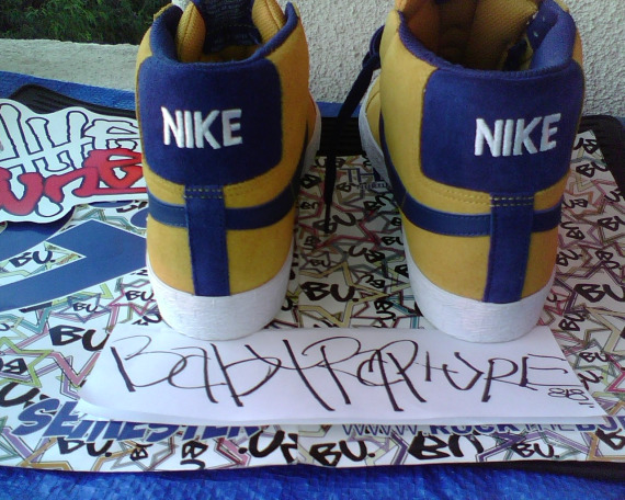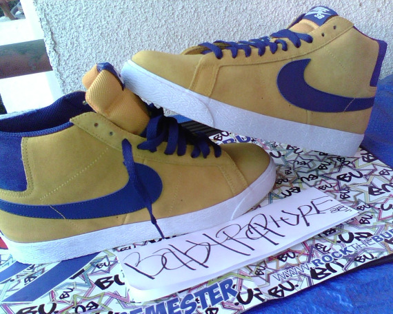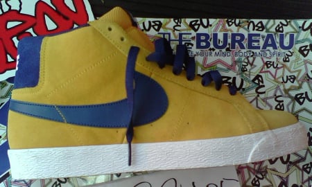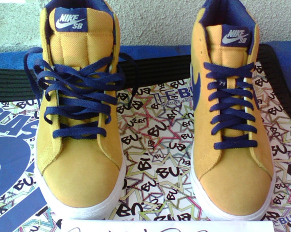 For their Spring 2010 collection, Nike SB will be releasing a new colorway of their classic SB Blazer model. This time around, the sneaker will come in mid-top form, and will host a gold leaf upper with insignia blue accents. The base of the Blazer is nubuck, while the tongue is mesh, and the swoosh is leather. Be sure to check out the additional pictures after the jump, and stay tuned as the tentative release season of Spring ’10 nears.