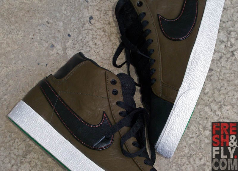 We’ve seen interesting waves of Nike Blazer Customs hit the internet lately, and another clean, inspiring colorway has just surfaced. This Nike SB Blazer takes colorway cues from Undefeated. Theย inspirationย comes from the instant classic, UNDFTD Air Jordan IV (4) Retro. The upper consists of a similar olive color that’s seen on the AJ IV, with the exception of drab, crinkled leather in place of the soft nubuck paneling. Black compliments the shoe with the Swoosh and heel tab. Orange accent stitching top the sneaker off with Swoosh outlines and UNDFTD ‘Tally’ logo. For more images and work, visit Fresh & Fly.