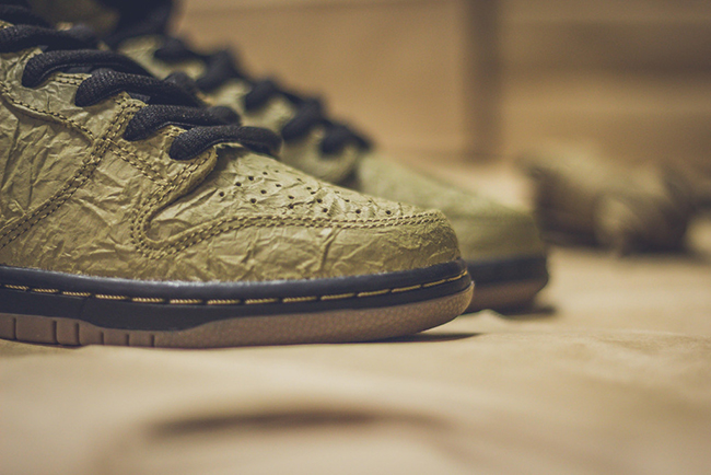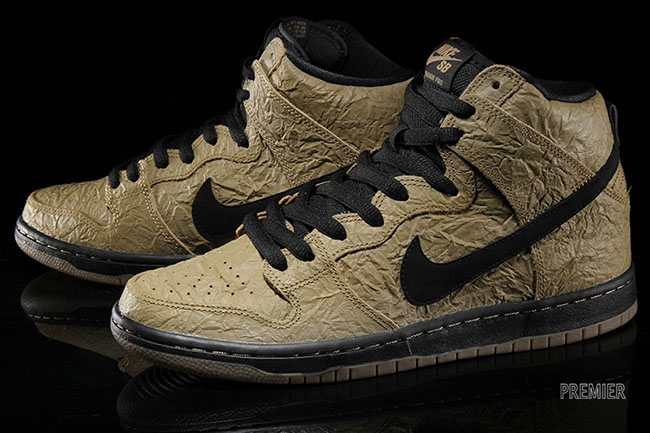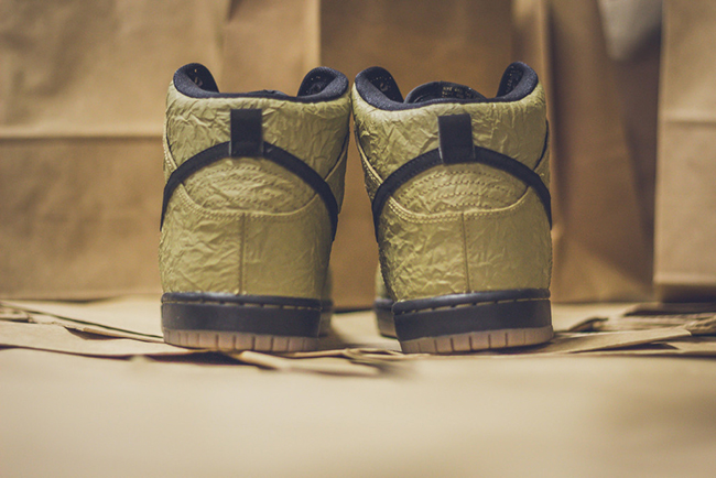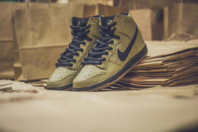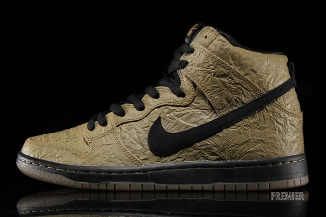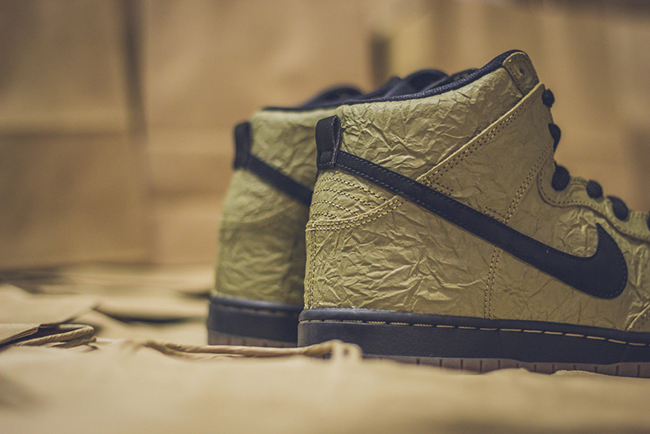 For those that want to grab their size in the ‘Paper Bag’ Nike Dunk SB High, they are now available at Premier. Other Nike SB retailers should have this model in the next week or so. Retail price is $110. To see a few more images of the shoes, scroll down.