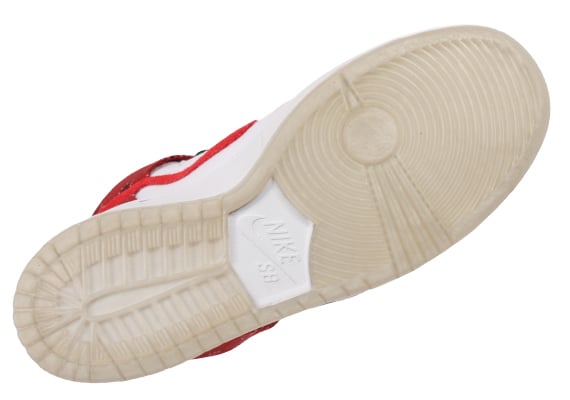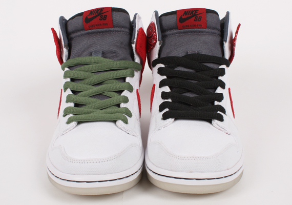With 4/20 justย seven days away new pictures of the Nike SB Dunk high ‘Cheech & Chong’ has surfaced once again, giving us a better look at the shoe. Featuring a mainly white canvas upper, with a blue canvas tongue and blue inner linning. A red suede is used on the swoosh, while a red bandanaย print is used on the right shoe and part of a red skull cap is used on the left shoe both use to represent Cheech and Chongs headgear. A white translucent sole is used, giving this shoe a nice touch. These will be available at select Nike SB retailers this 4/20. Check out the new images and let us know what you guys think, can these campare to last year’s 4/20 Dunk high?
