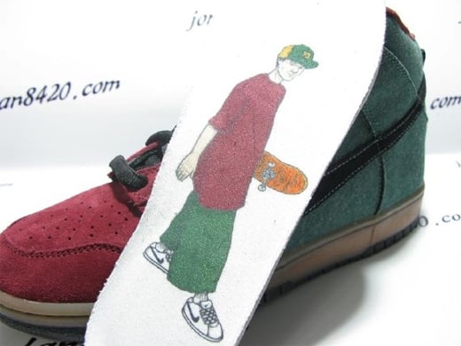The Nike SB Dunk High is seen as one of Nike’s top skateboarding sneakers due to the comfort and support it provides all skateboarders worldwide. The pair of SB Dunk High’s shown above features a green and red colorway accented by a gum sole and black swoosh. This pair utilizes the same denim material used on the Nike SB Dunk Low – Purple Denim featured earlier today. The green denim material wraps around the back of the shoe and is also seen on the green straps emerging from the side of the sneaker. The insole on this pair resembles the insole of the aforementioned Nike SB Dunk Low. With the use of such a unique material and colorway, this pair of Nike SB Dunk High’s will definitely be embraced by many in 2009. Via 8420Sneaker