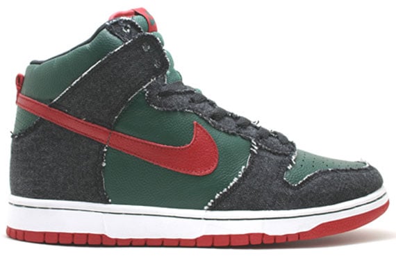 Being originally designed in 2006 as part of a team manager series, the Gucci Nike SB Dunk Highs were scrapped due to some disagreements.ย There’s said to be less than 30 sample pairs from that time in circulation right now.ย Luckily, Nike has decided to revive them and drop them as a general release later this year.ย With no changes from the sample pair to the pair set to release this holiday season, this Gucci colorway has to be one of the best looking Nike SB Dunk Highs we’ve seen in years.ย Be on the lookout for these in later months.