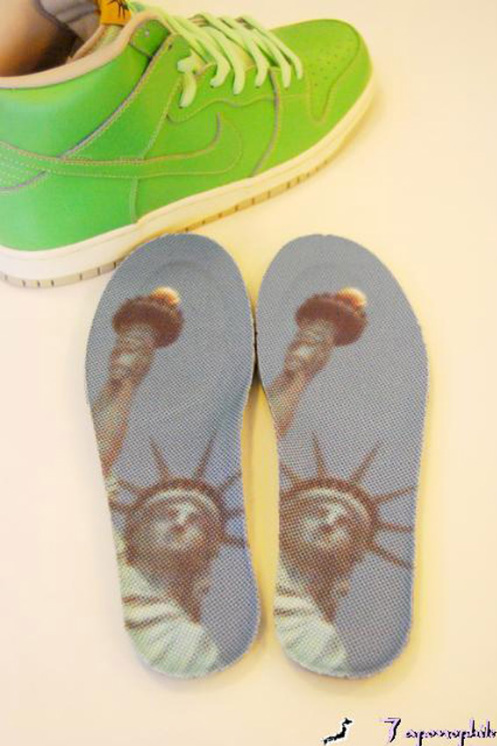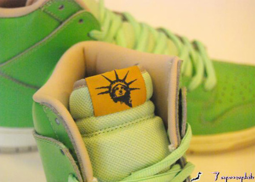 First seen a couple months back the Nike SBย Dunk high ‘Liberty’ inspired by one ofย New York City’s infamous landmarks the Statue of Liberty, is now available. Featuring a seagrass leather upper that will eventually fade to a copper color once scuffed or scratch, sitting on top of a cream colored midsole and grey outsole. A picture of the Statue of Liberty appears on the shoes insoles, as well as on the shoes tongue tag replacing the Nike SB logo. The Nike SB Dunk high ‘Liberty’ should be available now at select Nike SB retailers such as Green Hill Skateshop.