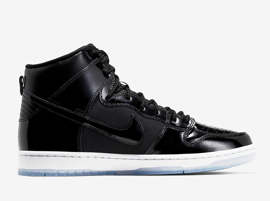 Going back to 2011, we saw the โSpace Jamโ theme applied to the Nike SB Dunk Low. Looking closer this Nike SB Dunk High comes with Black ballistic mesh and patent leather across the upper while Concord is applied to the branding. In addition we have White on the midsole and an icy translucent outsole. More highlights includes โSBโ logo on the heel which is the same font as the Air Jordan 11s โ23 or โ45โ.
