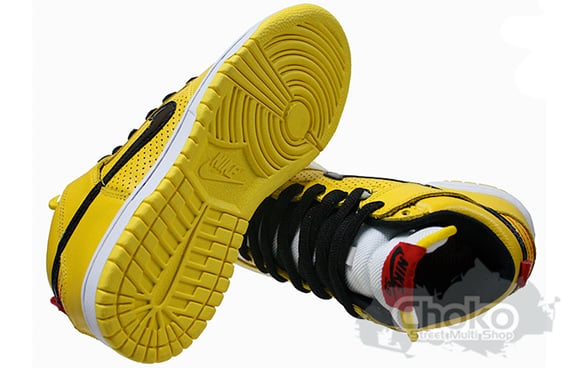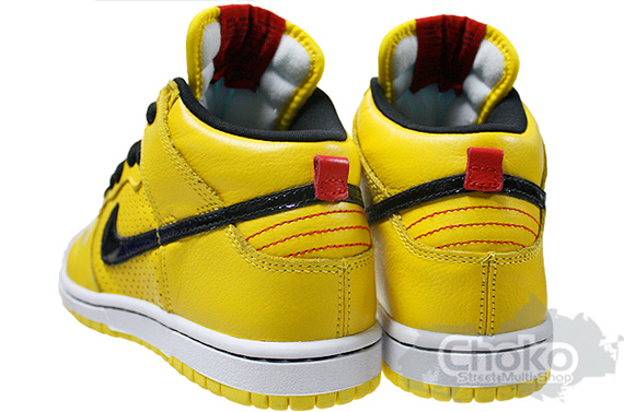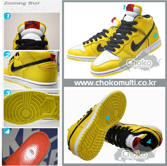 Nike SB’s blue box era signals the incoming of thinner tongues and promising releases like this Dunk High pictured. White, yellow and black combine to form this SB Dunk High which also sports a reported mid-section and patent leather swoosh. The upper consists of mostly yellow with white being thrown on the toebox, midsole and tongue to lighten things up. The last piece of design is red on the tongue which also ties in to the heel stitching and insole. The newest SB Dunk High has appeared on a Korean based retailer website with no word of U.S release or any other details. Stay posted for an update as news breaks.