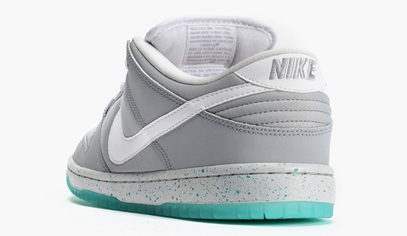While most of us won’t be getting the Nike Air Mag, since we can imagine how limited they will be, Nike does a good job offering the Dunk SB Low that should satisfy most. Using wolf grey through the uppers, while white hits the swoosh, midsole and laces. Light retro also known as teal is speckled throughout but hits solid on the sole. The insoles will also use part of the hover board from Back to the Future II.
