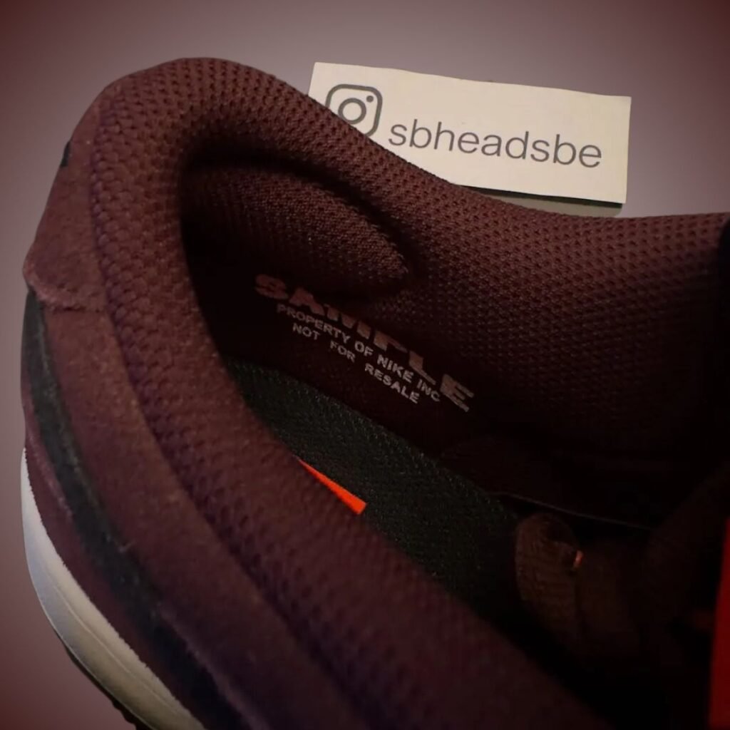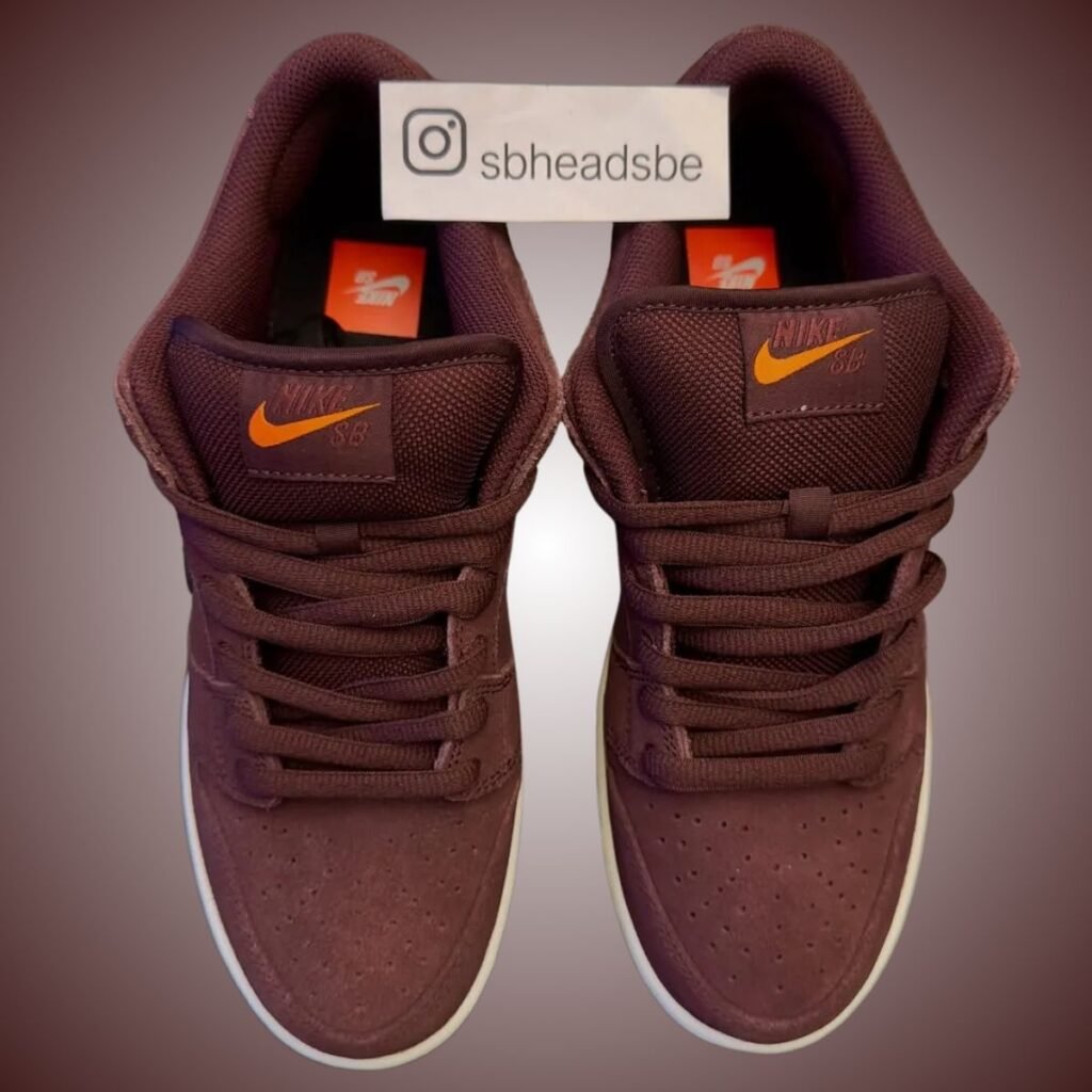 This Nike SB Dunk Low is dressed in a Burgundy Crush, Black, Mystic Dates, Sail, Gum Light Brown, and Safety Orange color combination. As you can see, this pair is covered in Burgundy suede across the upper, giving it a premium feel. In addition, Black appears on the Swoosh logos across the panels. Like other Orange label pairs, we have an Orange Swoosh on the tongue labels and Nike SB branding on the insoles. Other details include a Sail midsole and a Gum rubber outsole.