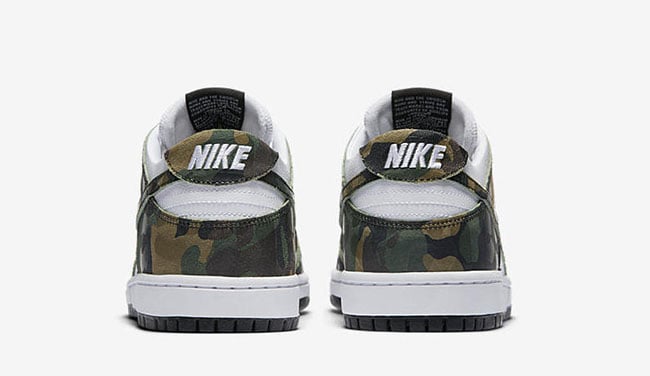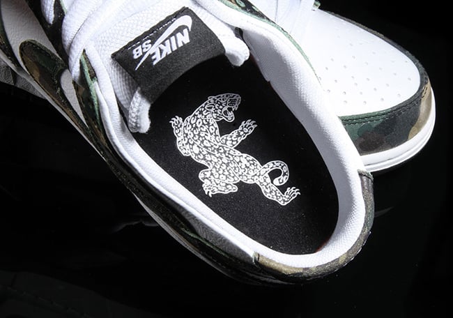 Below you can check out additional images of the Nike SB Dunk Low Pro Camo which will give you a detailed look. The will release at select Nike Skateboarding retailers on January 5th, 2016. Retail price is set at $90.