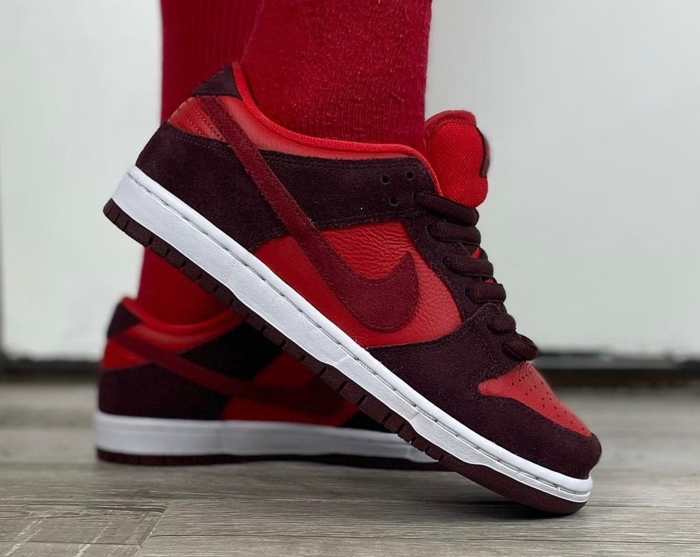 Update (2/28): New on-feet photos of the Nike SB Dunk Low โCherryโ via yankeekicks.