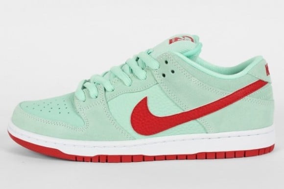 Coming soon from Nike SB is a Medium Mint/Gym Red makeup for the Nike SB Dunk Low.