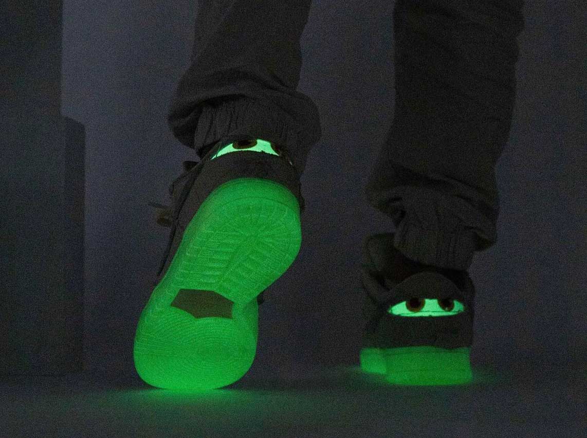 Going over this Nike SB Dunk Low, it features a tear-away upper that has layers to mimic a mummy. Following, a Turquoise shade lands on the suede Swoosh, and we have eyes on the heel. On the inside of the tongue is the Eye of Horus with toilet paper and grass on the insoles. The highlight of this pair is glow-in-the-dark detailing that adorns the tongue label, spider on the left toe, heel tab, midsole, and rubber outsole.