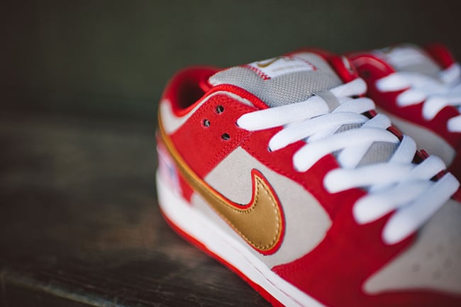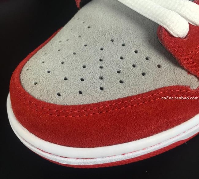 Update: We new have a release date for the ‘Cincinnati Reds’ Nike SB Dunk Low which will debut on December 8th, 2015 along with the Oakland SB Dunk High at retailers like Rock City Kicks. Price tag is $90.