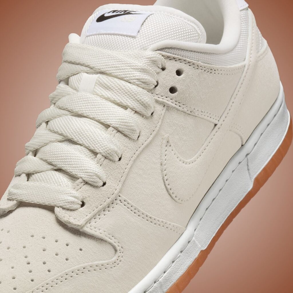 This Nike SB Dunk Low comes dressed in a Pale Ivory, Summit White, White Copper Moon, and Black color scheme. As you can see, this pair comes highlighted in suede throughout and dipped in Pale Ivory. In addition, White adorns the midsole, ankle, and tongues, while we have a semi-translucent Gum rubber outsole. Completing the design is Black on the tongue branding and insoles.
