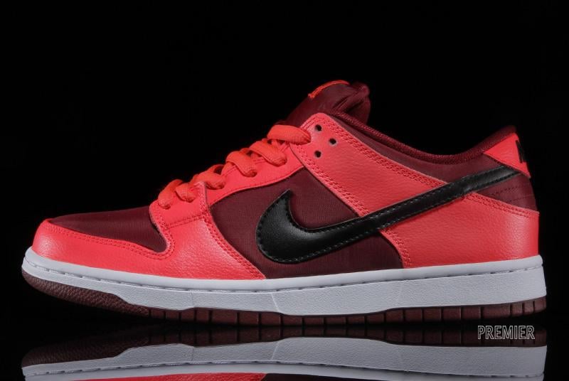 Set at a retail price of $85, the Nike SB Dunk Low Pro “Laser Crimson/Black-Team Red” is now available through participating dealers like Premier.