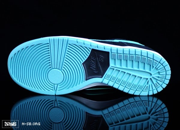 Dubbed the “Tiffany J-Pack”, these Dunks feature the same color blocking as the previous release, with Tiffany blue replacing the chartreuse. ย These also ditch the black leather paneling on the midfoot and heel in favor of black suede.