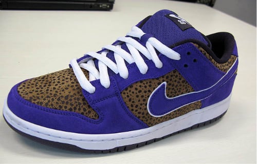 Droppingย in the fall season a Safari Dunk SB. Thats right, Safari print on a SB Dunk.ย Theย safari printย appears on the toe box, side panel, as well as the ankle collar. The rest of the shoe is a royal blue suede , with the swooshย being lined with white to contrast the royalย blue. Lets not forget theseย Dunkย lowsย haveย aย fat tongue! No further information was given about the shoe, but youย can tellย this is going to be aย must cop. More pics after the jump.