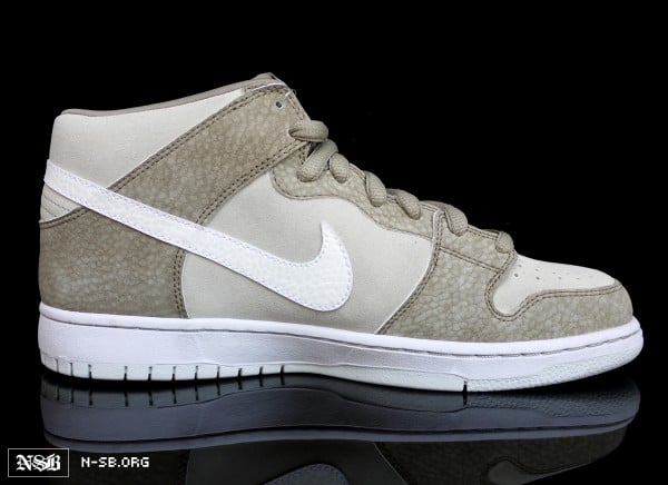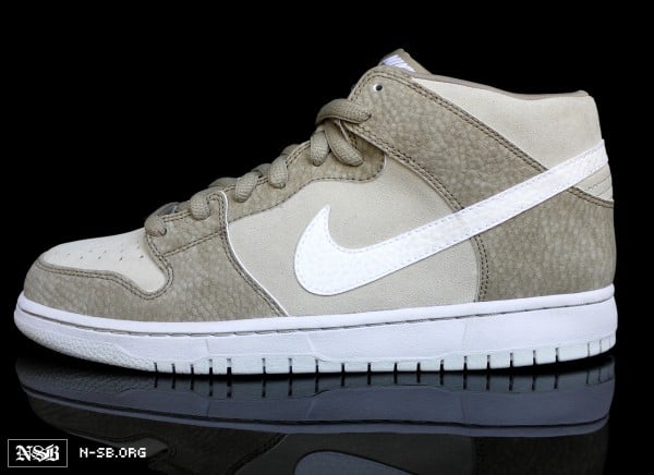Sporting a simple suede and textured leather upper, the kicks feature a light khaki on the suede paneling while the leather portions, laces, and lining consist of a darker contrasting shade. ย These Dunks are finished off with white accents on the branding, midsole, and outsole.