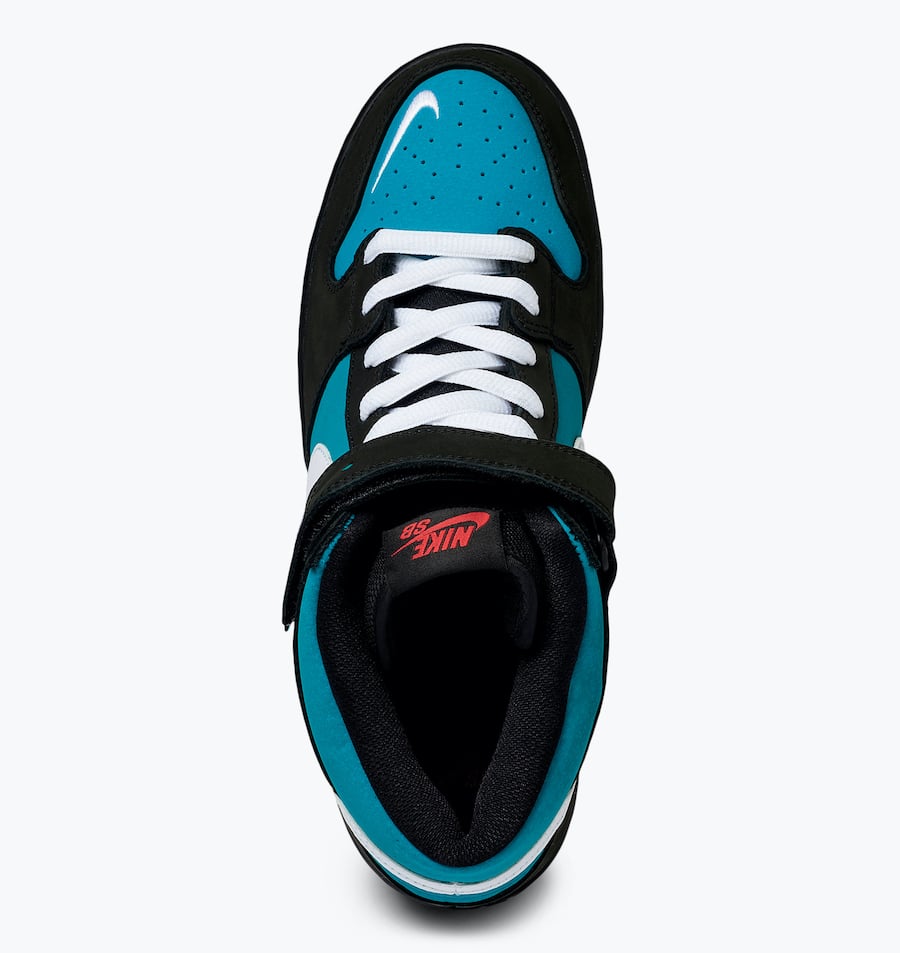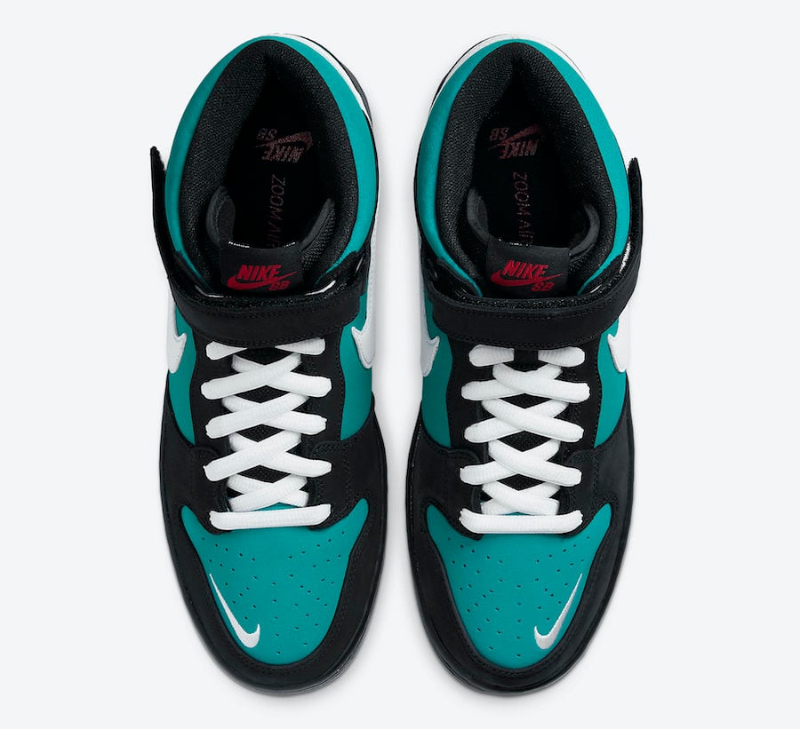 This Nike SB Dunk Mid specifically pays tribute to the Air Griffey Max 1 and the classic โFreshwaterโ colorway. Utilizing both Teal and Black across the upper while White is applied to the Swoosh logos, laces and stitching on the midsole. Other details includes โ58โ embroidered on the ankle strap, Red on the tongue label and Black across the midsole and rubber outsole.