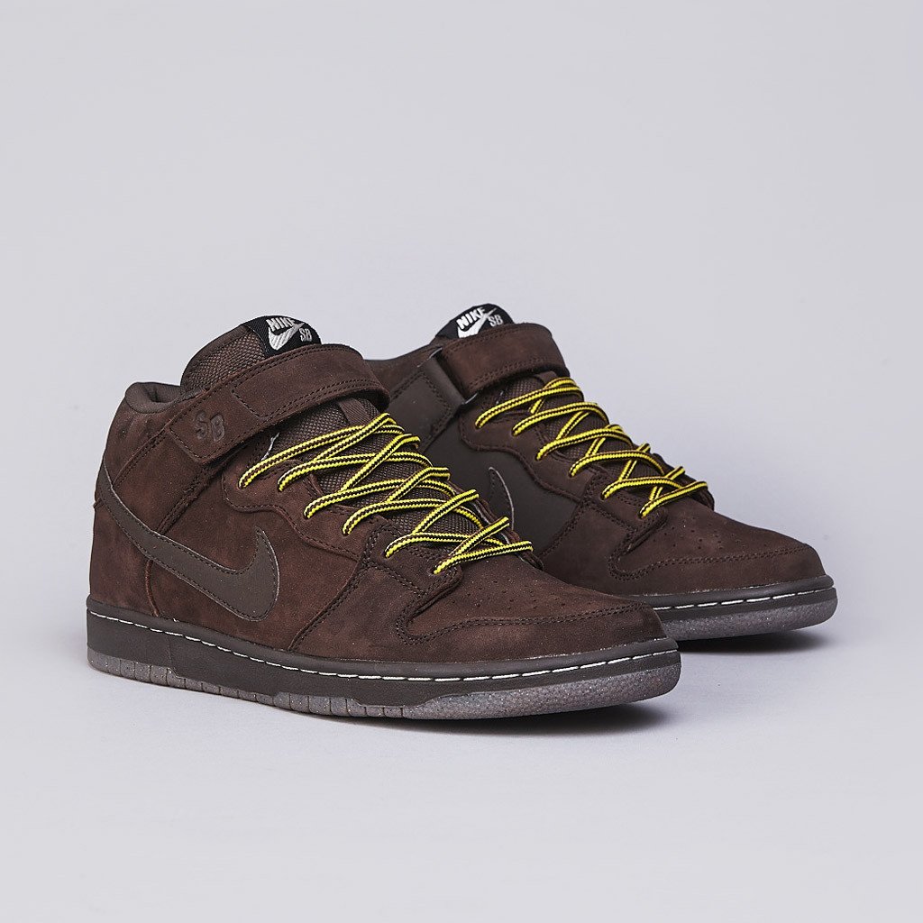 Back by popular demand, loyal Nike SB Dunk Mid fans remember this colorway from 2009 when it first hit the scene. Four year later, not much has changed as this theme maintains its dark chocolate colored suede uppers as well as its yellow laces and tonal branding.