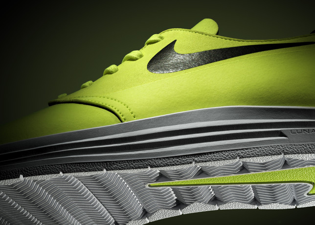 As Nike likes to put it: Looks can be deceiving. What sort of looks like the Nike Solarsoft Moccasin by design and a cross-mix between your favorite signature skate shoe, Nike SB unveils the all-new Nike SB Lunar One Shot in a vibrant volt and black colorway.