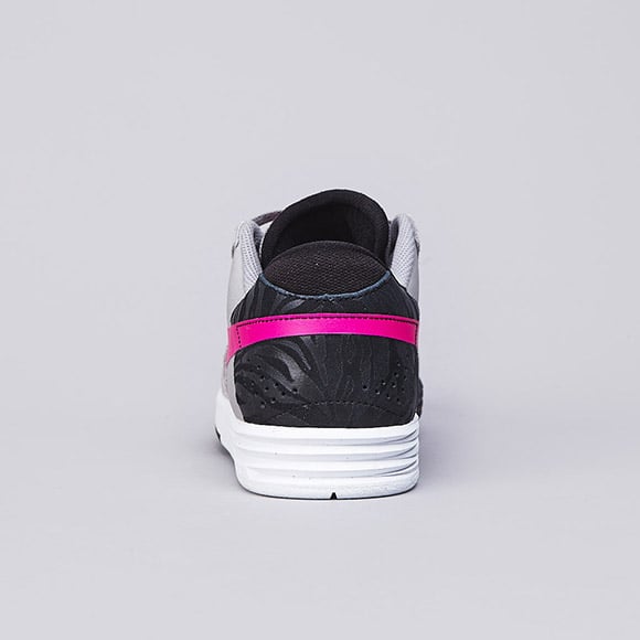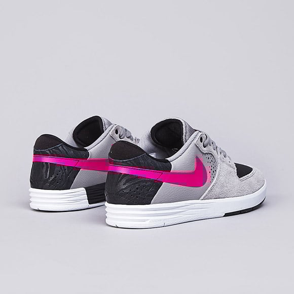 After just releasing the info on the “Pink Foil” edition of the Nike SB Stefan Janoski, we have another signature model getting the “barbie” SB treatment. Paul Rodriguez‘ 7th shoe is made with grey suede and leather in the upper and black leather on the toebox, tongue and heel. “Pink Foil” takes over the Nike swoosh, Nike tongue branding and the Lunarlon cushioning logo on the visible insole while the heel boasts a zebra print on the black leather. A white/black midsole bring this shoe all together and can be bought now at the UK’s Flatspot for $105(US).