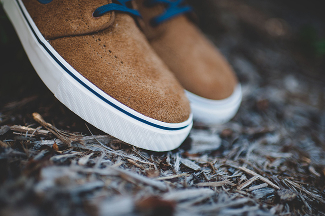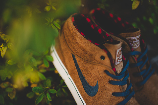 This Stefan Janoski Mid features a suede upper while dipped in ale brown, a nice touch for the season. Following is squadron blue that hits the swoosh and laces. Summit white lands on the midsole while the outsole features gum. One of our favorite parts is the liner which has a red and black flannel pattern.