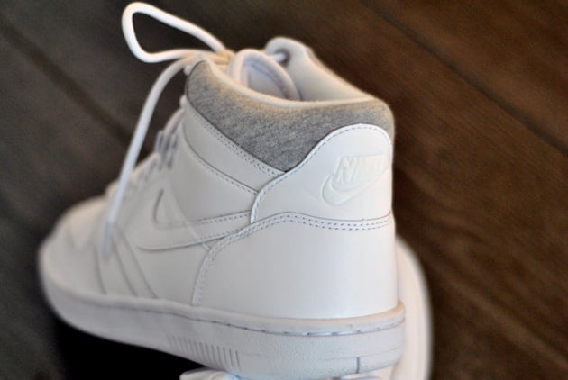 The Nike Sky Force 88 Mid, a classic 80’s basketball sneaker, adds another colorway to its upcoming fall line up. As a follow up to the Nike Sky Force 88 Vintage Collection, the new mid will feature a clean all white leather upper, heather grey padding on the ankle, and an all white outsole. Given its simple colorway, you can still expect the same great look with these classics. Check out more detailed images below and look for these at Nike Sportswear retailers soon.