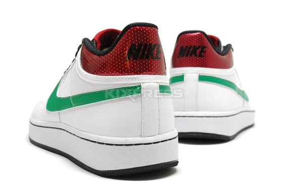 To continue the Spike Lee line with Nike, the shoe company has released a retro dedicated to the Mr. New York. The Nike Sky Force Mid Spike Lee edition follows a white/lucky green-black-beet colorway, and showcases the iconic glasses tongue tag logo. The full white leather upper is offset by a lucky green swoosh and beet red patent back heel panel. A black outsole matches the laces and inner lining, where “Brooklyn” is placed at the opposite side of the tongue tag. This Sky Force is available now for under retail on eBay now.