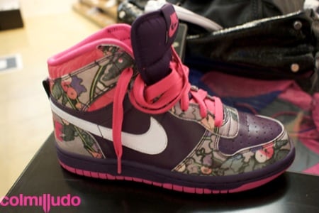 The Nike Sportswear division recently unveiled this floral print Nike Big Nike. The shoe features a violet purple base accented by a vivid pink outsole and ankle collar. The Swoosh is white and the strings are pink, too. It’s safe to assume that these Big Nikes are a petite feet ladies only exclusive. A vintage-inspired floral print decorates the shoe’s premium leather overlays. Little is know about the Nike Sportswear Big Nike “Floral”, but we’ll be sure to update when more conclusive information comes to light.